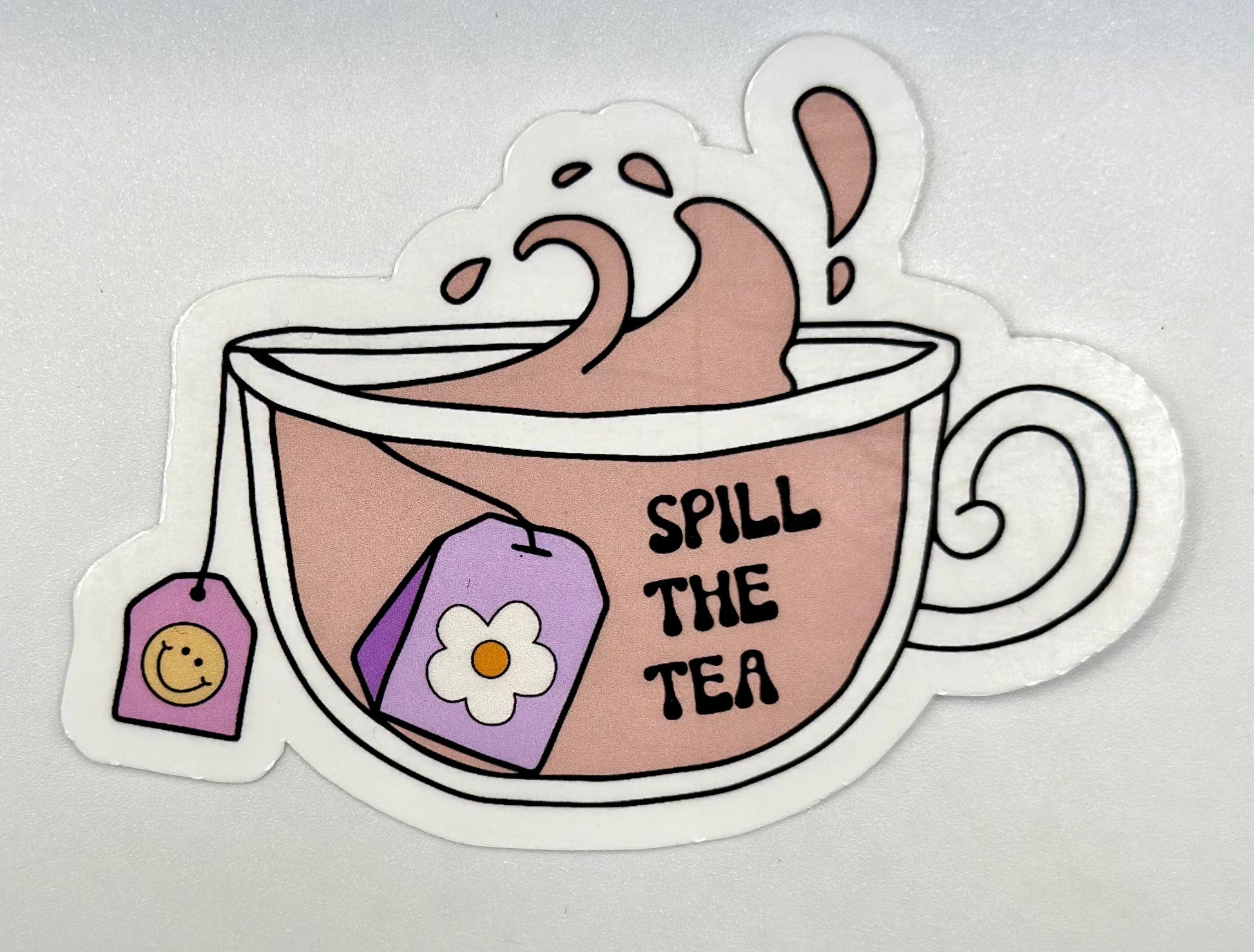 Spill The Tea Sticker. Fun sticker for laptops, hard hats, hyrdo flask etc.. Waterproof Sticker