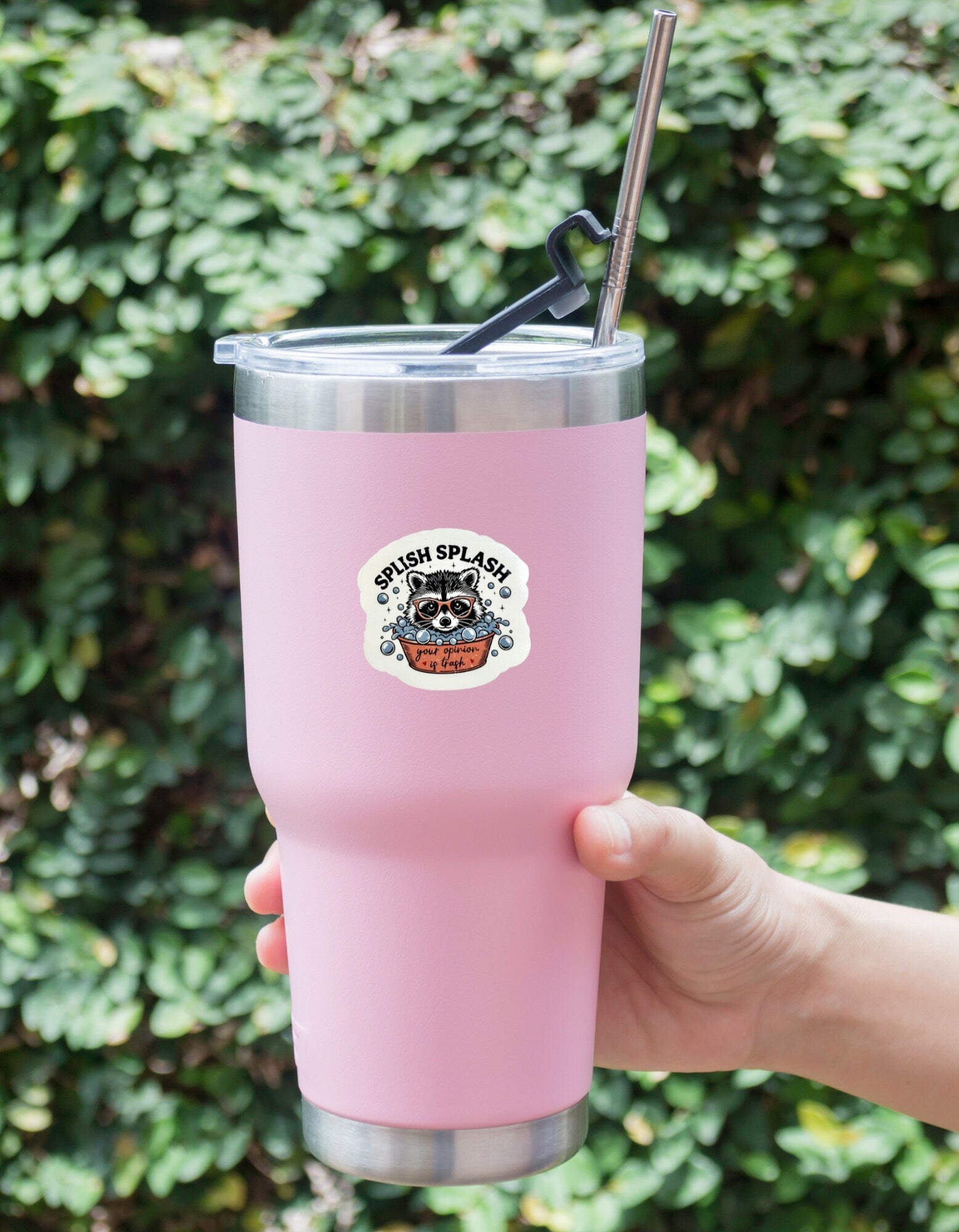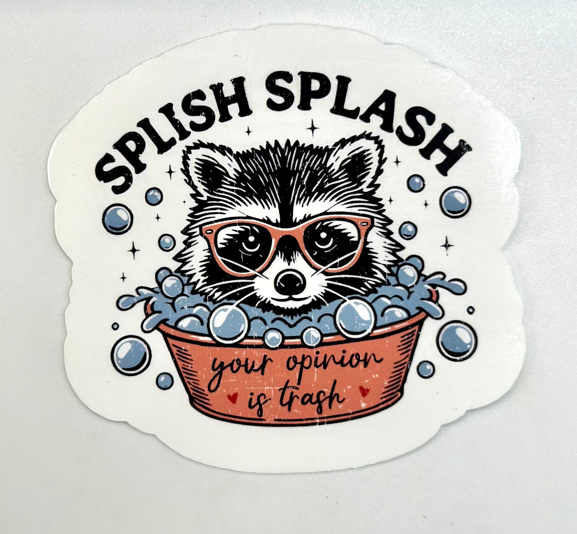 Splish Splash Your Opinion Is Trash Raccoon Sticker. Fun sticker for laptops, hard hats, hyrdo flask etc.. Waterproof Sticker