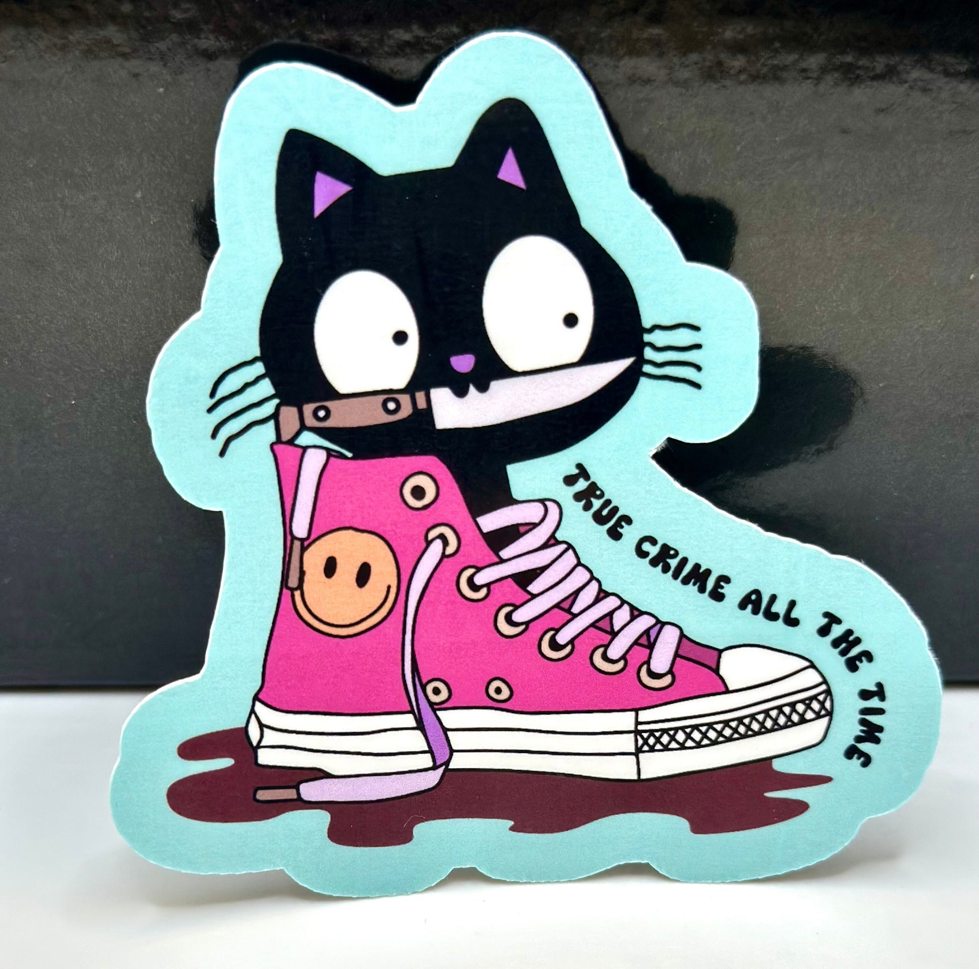 True Crime All The Time Sticker. Fun sticker for laptops, hard hats, hyrdo flask etc.. Waterproof Sticker
